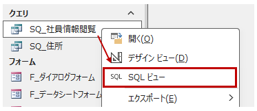 Access2024では、対象となるクエリの右クリックメニューからSQLビューへの切り替えを行うことができるようになりました。