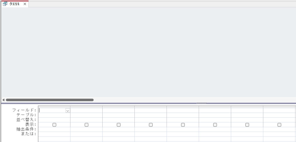 メニュー:「作成」→「クエリデザイン」を選択し、新規のクエリ デザインビューを開きます。