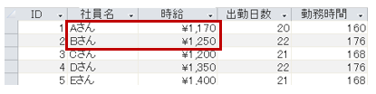 Aさん、Bさんの時給のみ、50円加算されました。