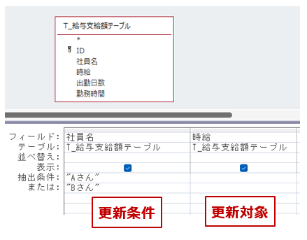 これにより、T_時給改訂テーブルの時給フィールドの値が、T_給与支給額テーブルの時給フィールドに上書きされます。