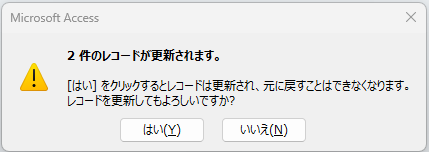 これまでご説明したとおり、更新クエリは大量のデータを一括更新できるため大変便利です。一方で更新クエリを実行すると、データが直接書き換わるためが元に戻すことができず、誤操作した場合の影響は大きくなります。