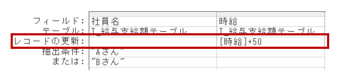 時給フィールドの「レコードの更新」欄に、[時給]+50